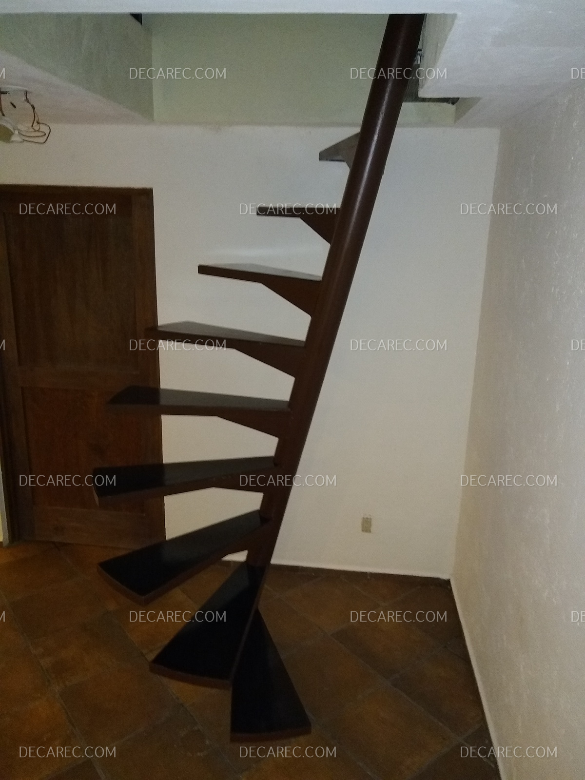Escalera de PTR, con huellas de madera entintada y acabado con Polyform 11000.